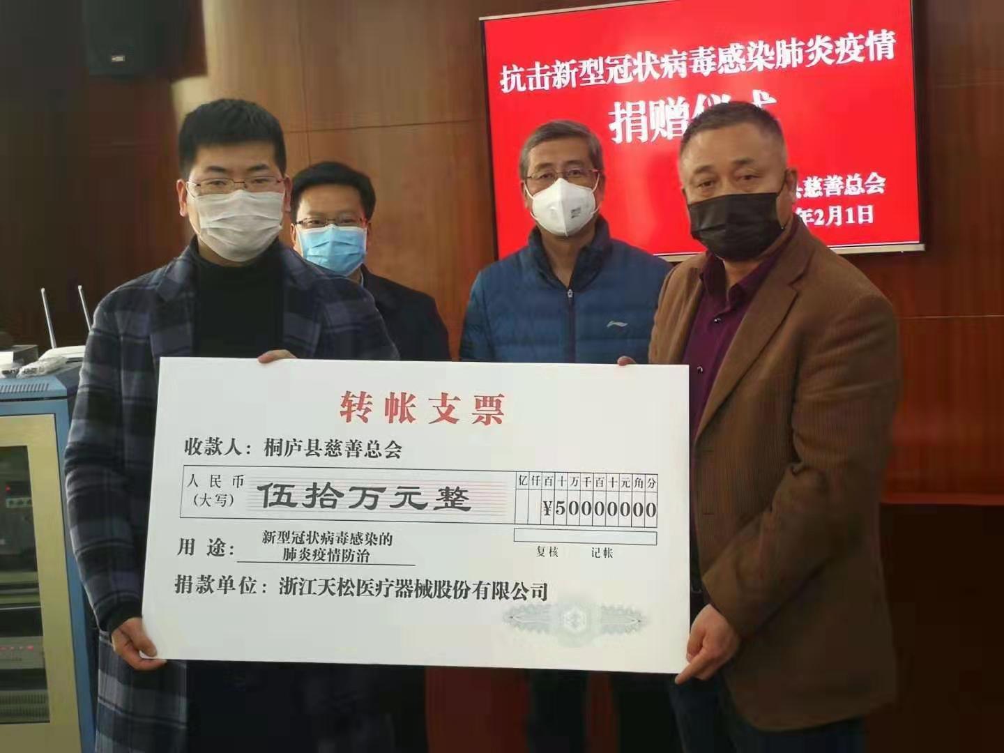 ����� �������Ƴ������������ �������Ƴ������������ �������Ƴ������������ �������Ƴ������ 2月1日,浙江天����� �������Ƴ����������� �������Ƴ������������ �������Ƴ������������ �������Ƴ�������松医疗器械股份有限公司向桐庐县慈善总会����� �������Ƴ������������ �������Ƴ������������ �������Ƴ������������ �������Ƴ�������捐赠50万元人民币,用于新型冠状病毒感����� �������Ƴ������������ �������Ƴ������������ �������Ƴ������������ �������Ƴ�������染的肺炎疫情防控工作,桐庐县慈善总会领导现����� �������Ƴ������������ �������Ƴ������������ �������Ƴ����������� �������Ƴ������场接受公司捐赠。这笔捐款将主要用����� �������Ƴ������������ �������Ƴ������������ �������Ƴ������������ �������Ƴ�������于购买抗击疫情所急需的防护用品及����� �������Ƴ����������� �������Ƴ������������ �������Ƴ������������ �������Ƴ������药品等物资。